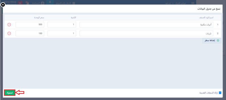 الصق البيانات التي نسختها من ملف الإكسيل داخل النافذة ثم اضغط على “استيراد” ليتم جلب البنود تلقائيًا.