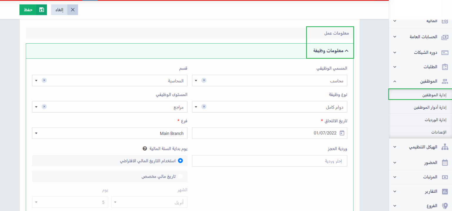 تظهر لك الحقول بهذا الشكل عليك حفظها لتجدها بعد ذلك في ملفات الموظفين.