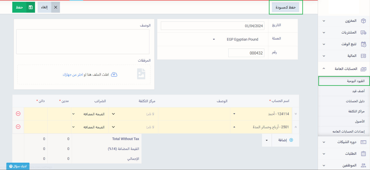 كيفية إضافة القيد كمسودة