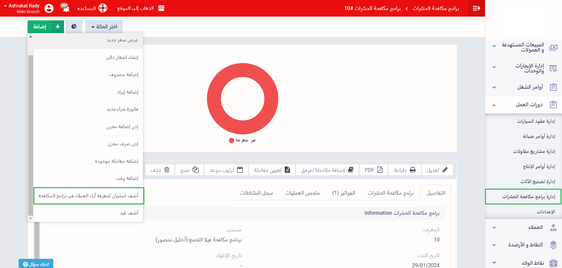 اضغط على “إدارة برامج المكافحة/ اسم نوع دورة العمل الخاصة بك” المنسدلة عن “دورات العمل” بالقائمة الرئيسية واضغط على مستند دورة العمل المراد إضافة النموذج المخصص له.