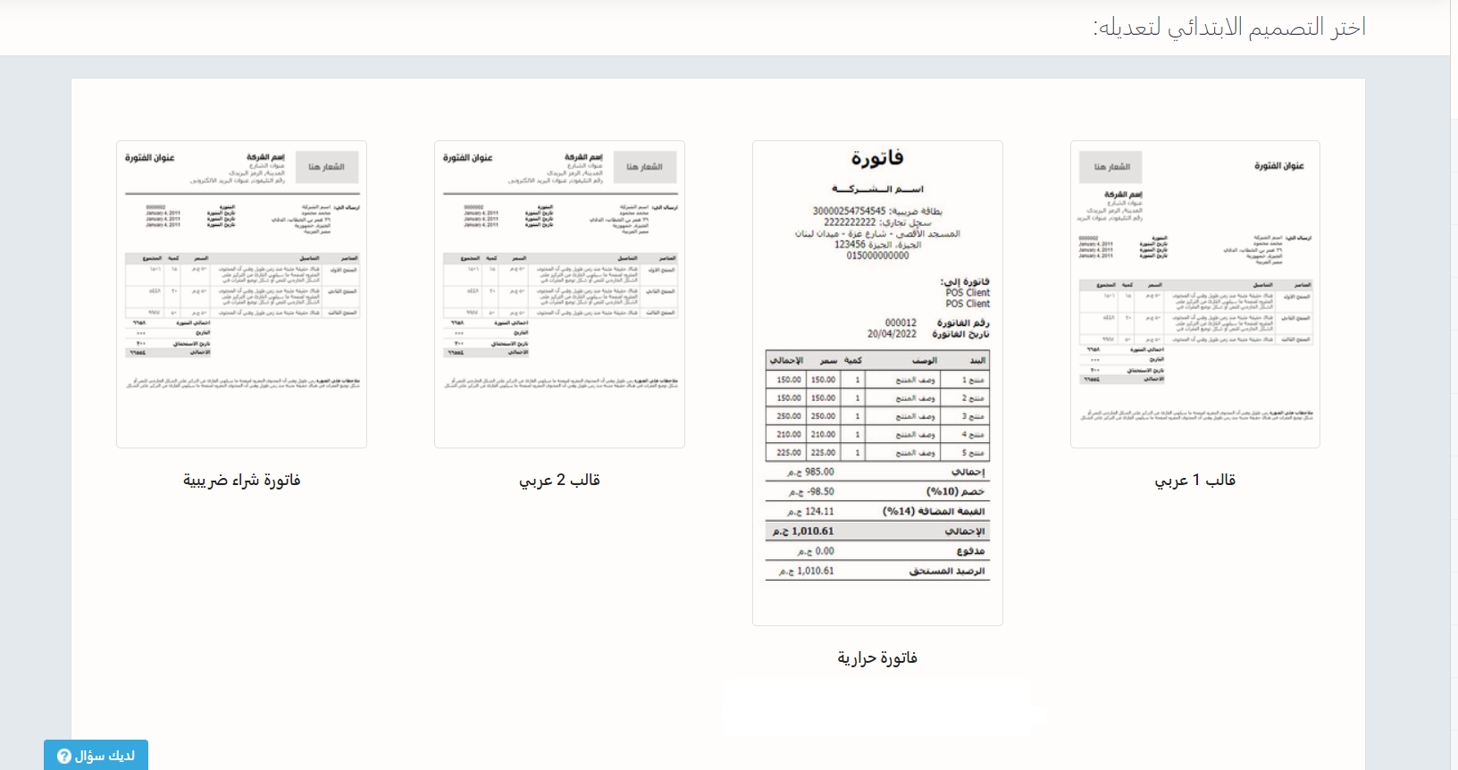 بالإضافة للنماذج الأساسية لمستندات دورة المشتريات من فواتير شراء ومرتجعات وعروض أسعار وأوامر شراء، هناك قوالب أخرى جاهزة يمكنك استخدامها بحسب التصميم المناسب لك. ويتيح دفترة التعديل على هذا النموذج وإضافة حقول ثابتة تظهر في تصميم القالب في كل مرة تستخدمه فيها.