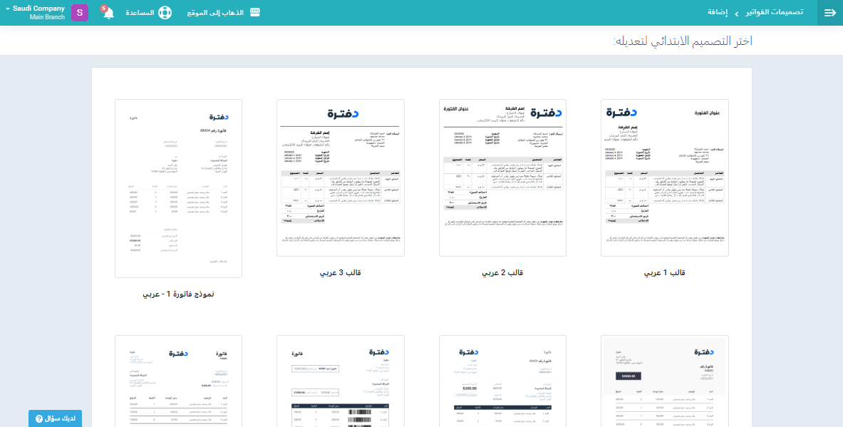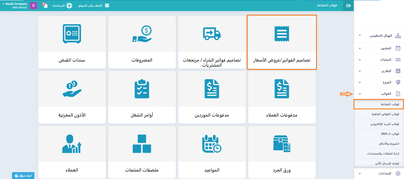 من القائمة الرئيسية اضغط على “القوالب“, ثم اضغط على “قوالب للطباعة“. اخنر “تصاميم الفواتير/ عروض الاسعار“.