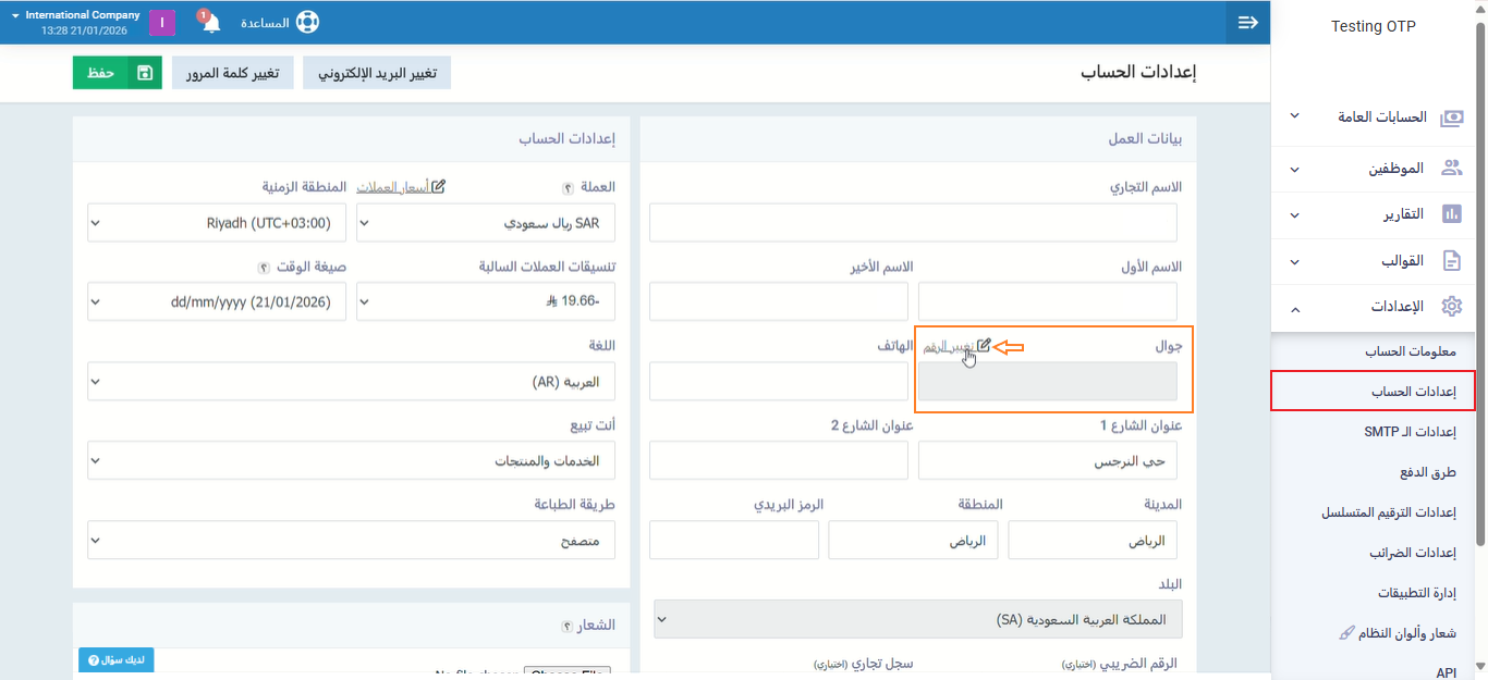 تغيير رقم الجوال المسجل في الحساب