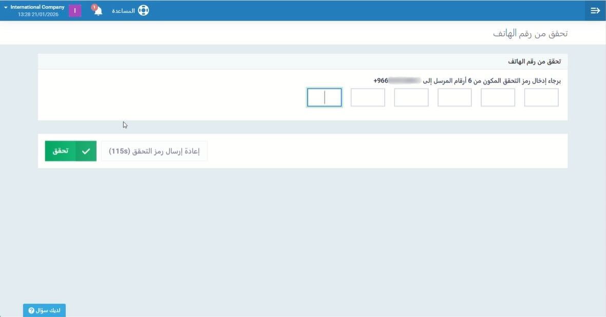 في حال عدم استلام رمز التحقق، يتيح لك النظام الانتظار لبضع ثوانٍ قبل الضغط على زر “إعادة إرسال رمز التحقق” لإرساله مرة أخرى.