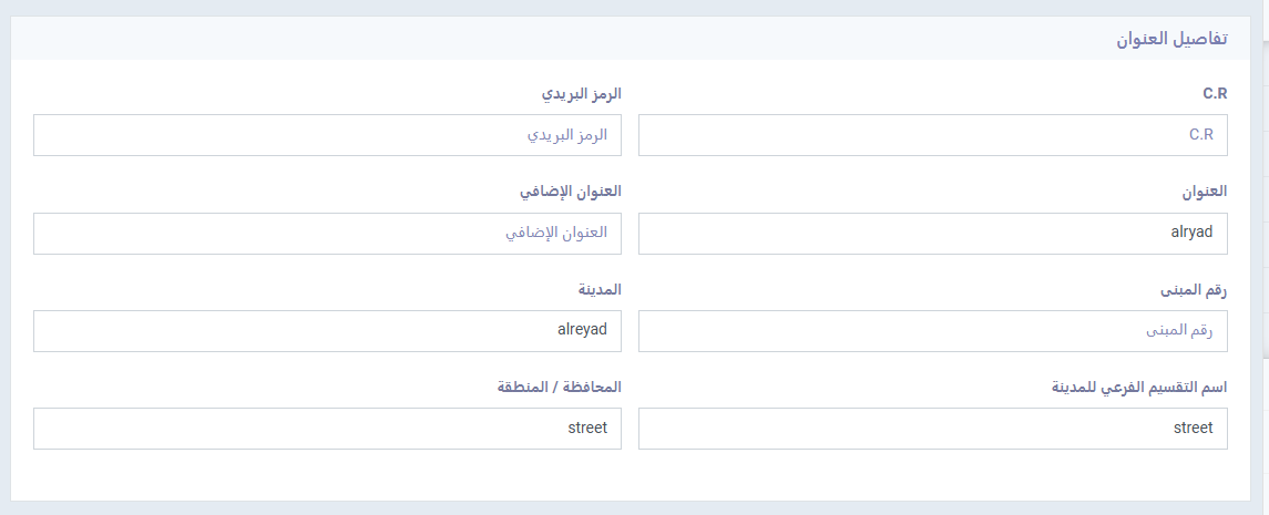 • سيتم ملئ جميع البيانات بشكل آلى في حال كانت مضافة في إعدادات الحساب، مع وجود الحقل التالي يتم ملؤه يدويًا.