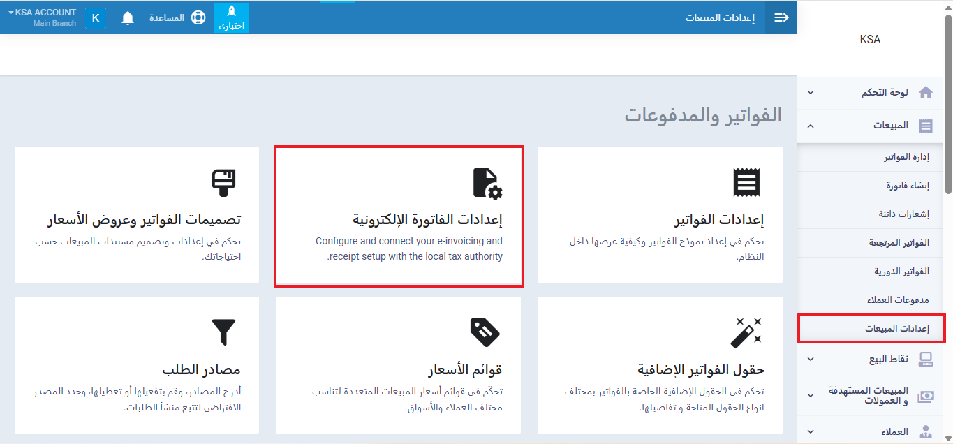 - اضغط على بطاقة “الفاتورة الإلكترونية السعودية”.