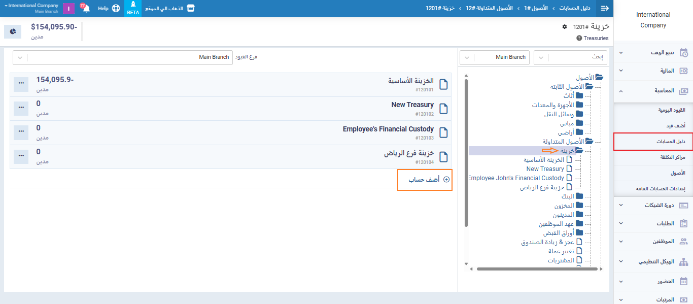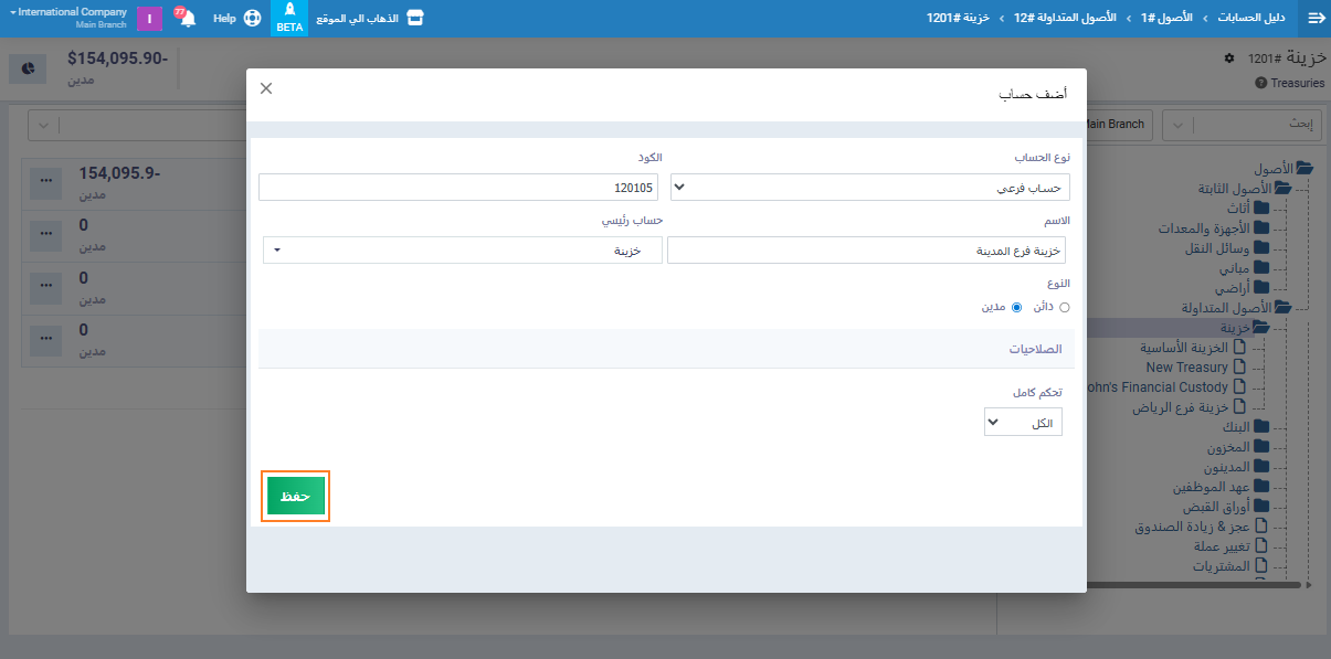 يتيح لك النظام إضافة حساب جديد داخل دليل الحسابات ليكون مخصصًا لحركات خزينة معينة. بعد ذلك يمكنك ربط هذه الخزينة بالحساب الذي أنشأته مسبقًا، مما يساعدك على متابعة كافة المعاملات النقدية الخاصة بها بشكل منظم، وضمان تسجيلها في الحساب الصحيح بدقة.