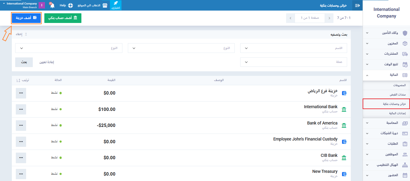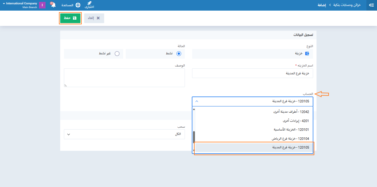 يتيح لك النظام إضافة حساب جديد داخل دليل الحسابات ليكون مخصصًا لحركات خزينة معينة. بعد ذلك يمكنك ربط هذه الخزينة بالحساب الذي أنشأته مسبقًا، مما يساعدك على متابعة كافة المعاملات النقدية الخاصة بها بشكل منظم، وضمان تسجيلها في الحساب الصحيح بدقة.