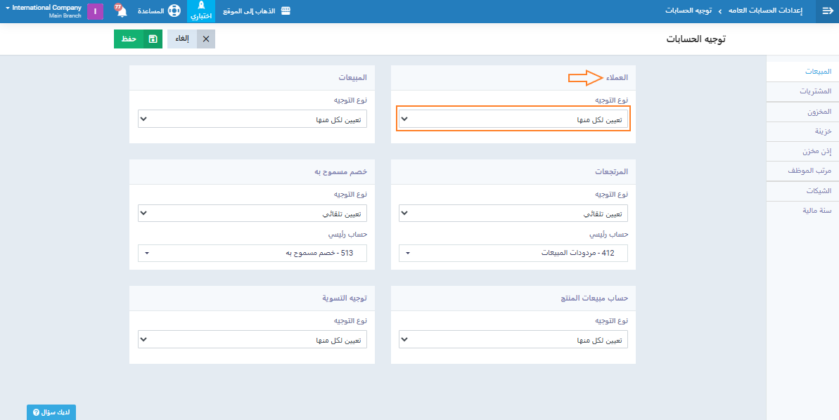 توجيه العميل إلى حساب معين في دليل الحسابات
