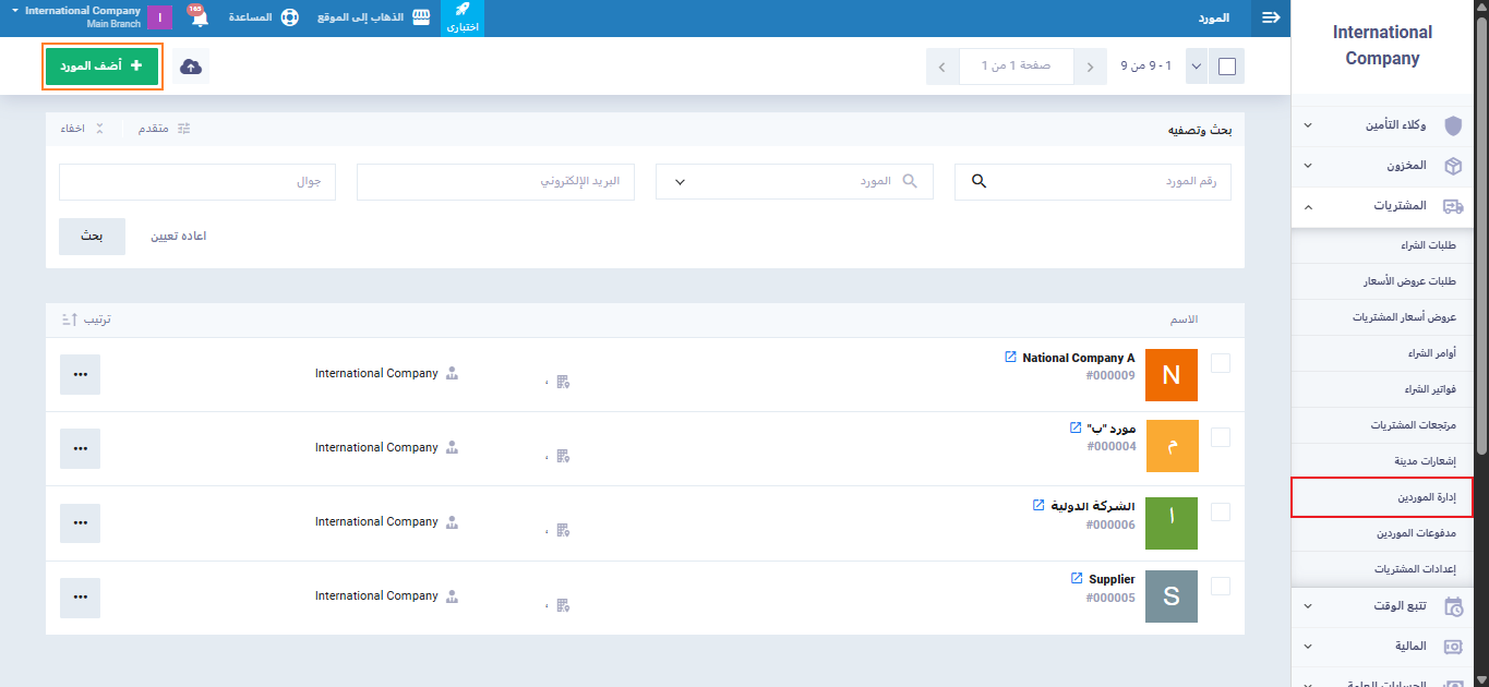 قبل الانتقال إلى خطوة إنشاء المورد، يجب أولاً تفعيل توجيه الحسابات لكل مورد بشكل منفصل، حتى يتم ربطه بالحساب الصحيح في دليل الحسابات. نوضح طريقة تفعيل هذا التوجيه بالتفصيل في الخطوات التالية.