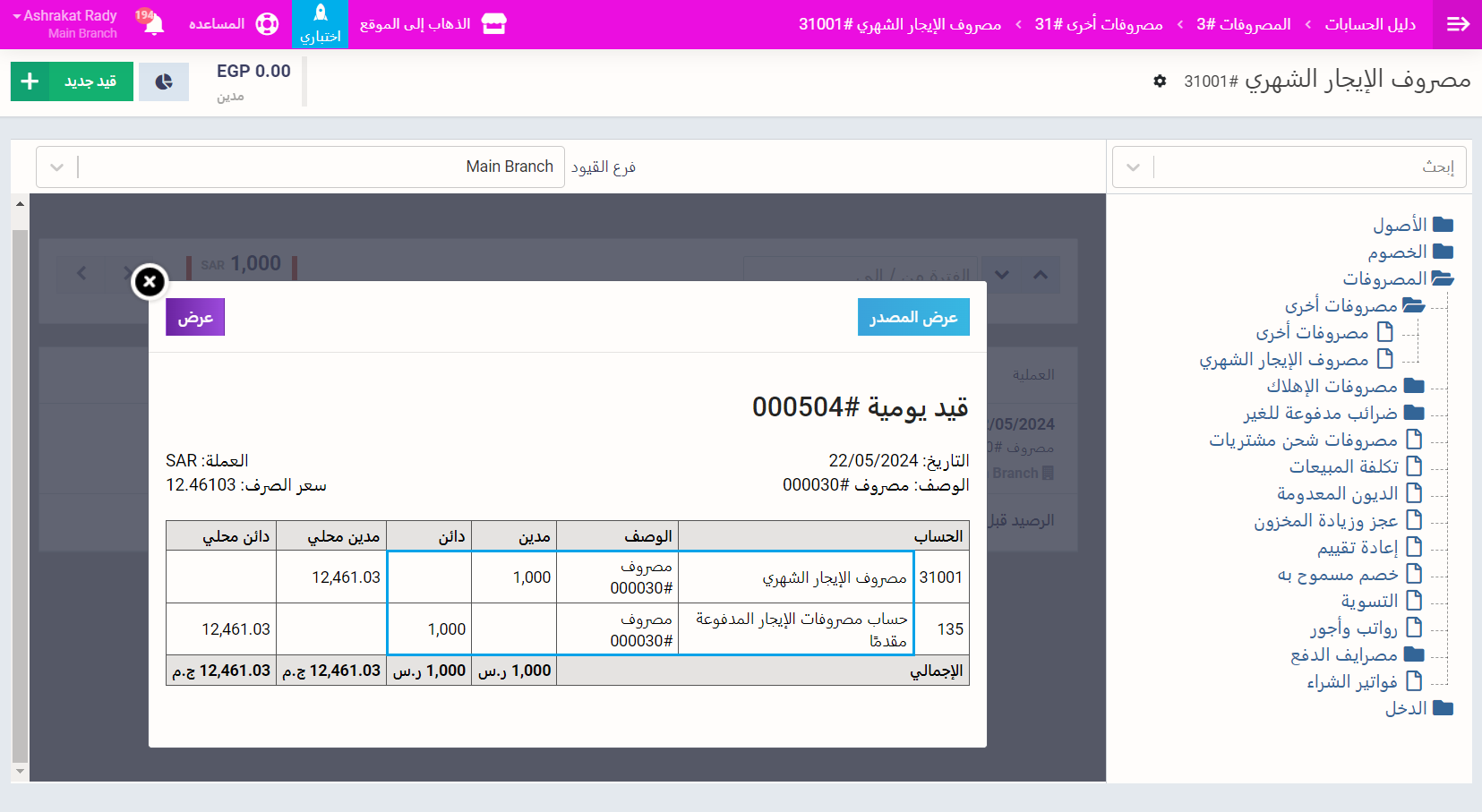 إضافة حساب فرعي لمصروفات الإيجار المدفوع مقدمًا في دليل الحسابات