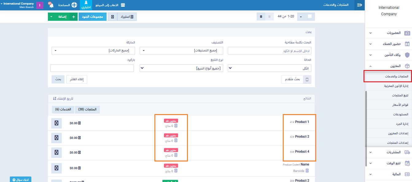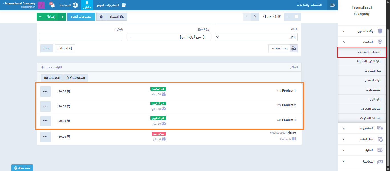 بعد العودة مرة أخرى إلى صفحة “المنتجات والخدمات“، ستلاحظ أن كميات المنتجات قد تم حذفها بالكامل عقب حذف الإذن المخزني المرتبط بها.