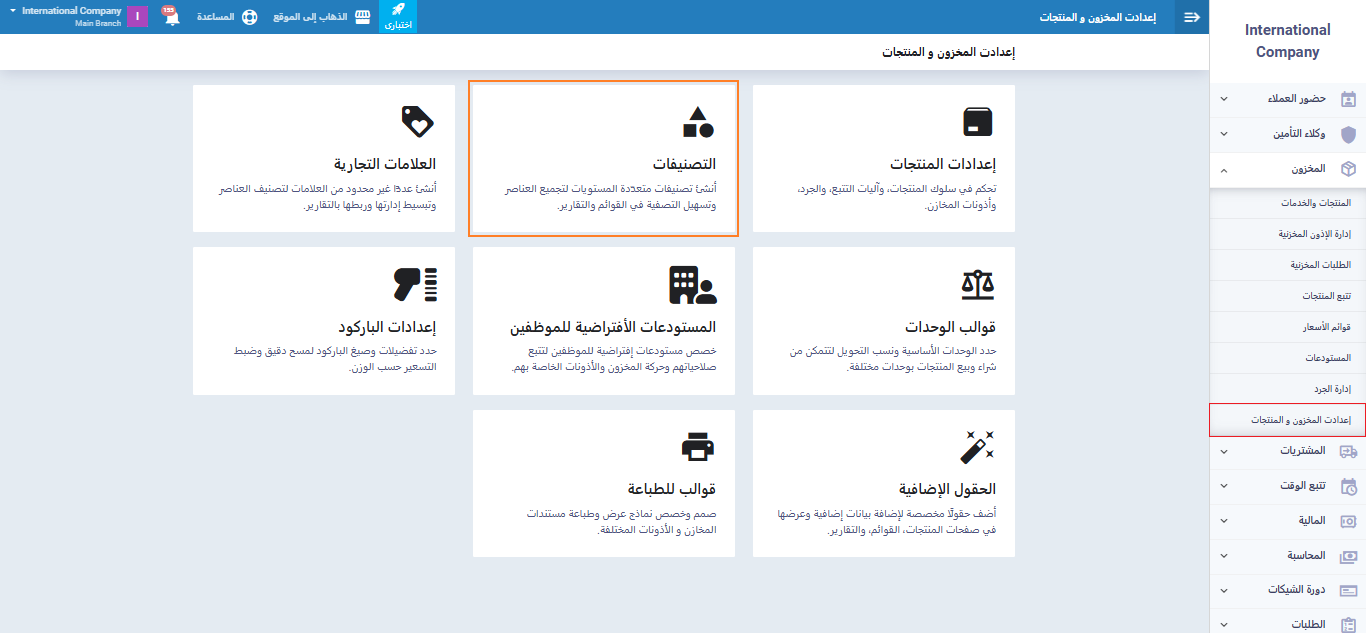يُعدّ إعداد “التصنيفات” أداة أساسية لتنظيم المنتجات داخل النظام وتسهيل إدارتها. من خلال هذا الإعداد، يمكنك إنشاء تصنيفات مخصّصة وربط المنتجات بها، مما يساهم في ترتيب الأصناف بشكل منطقي، تسريع الوصول إليها، وتحسين عرضها في القوائم والتقارير. كما يُسهّل الاعتماد على التصنيفات عمليات البحث والتصفية وإدارة المخزون بكفاءة أعلى.