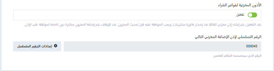 - الرقم التسلسلي لإذن الإضافة المخزني التالي