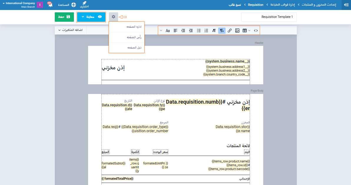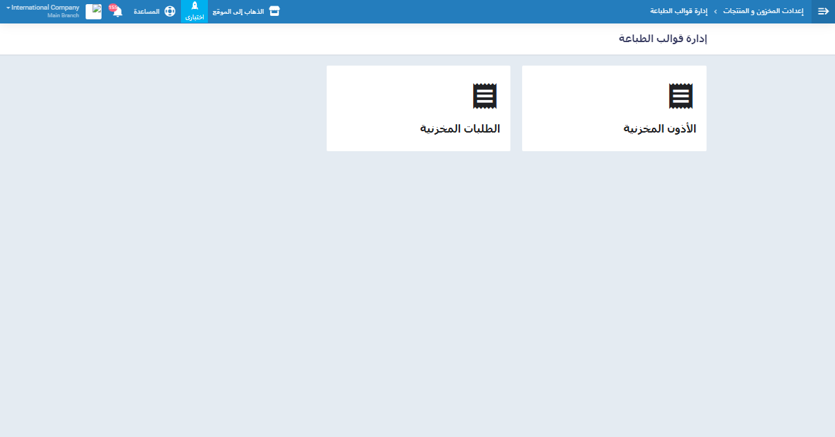 - قوالب الطباعة: تصميم وتخصيص نماذج عرض وطباعة مستندات المخزون والأذونات.