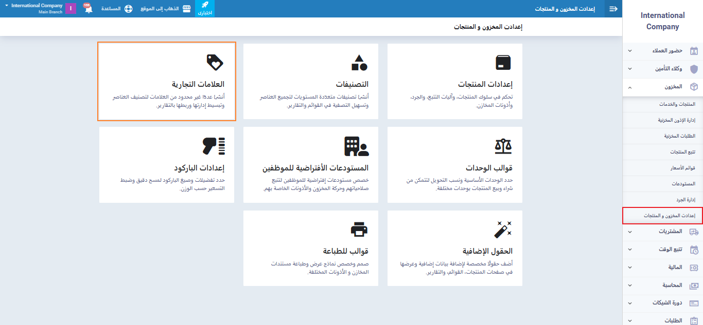 - العلامات التجارية: إضافة عدد غير محدود من العلامات لتصنيف المنتجات وربطها بالتقارير.