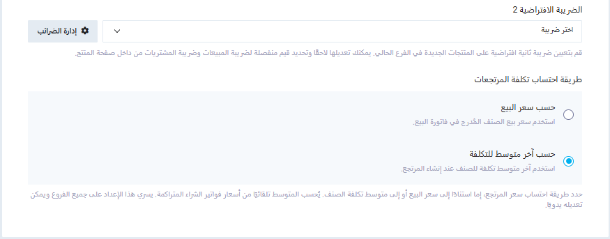 - تكلفة المرتجعات: تحديد احتسابها بسعر البيع أو بمتوسط التكلفة.