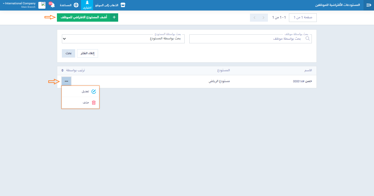 يمكنك إضافة مستودع افتراضي جديد لكل موظف بالضغط على الزر المخصص لذلك، مع تحديد اسم المستودع وربطه بالموظف المعني لتسهيل تتبع المخزون وصلاحياته. كما يمكنك تعديل بيانات أي مستودع افتراضي موجود بالفعل أو حذفه عند الحاجة لضمان إدارة دقيقة ومرنة للمخزون والعمليات اليومية.