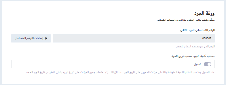 إعدادات متعلقة بعمليات الجرد، مثل: