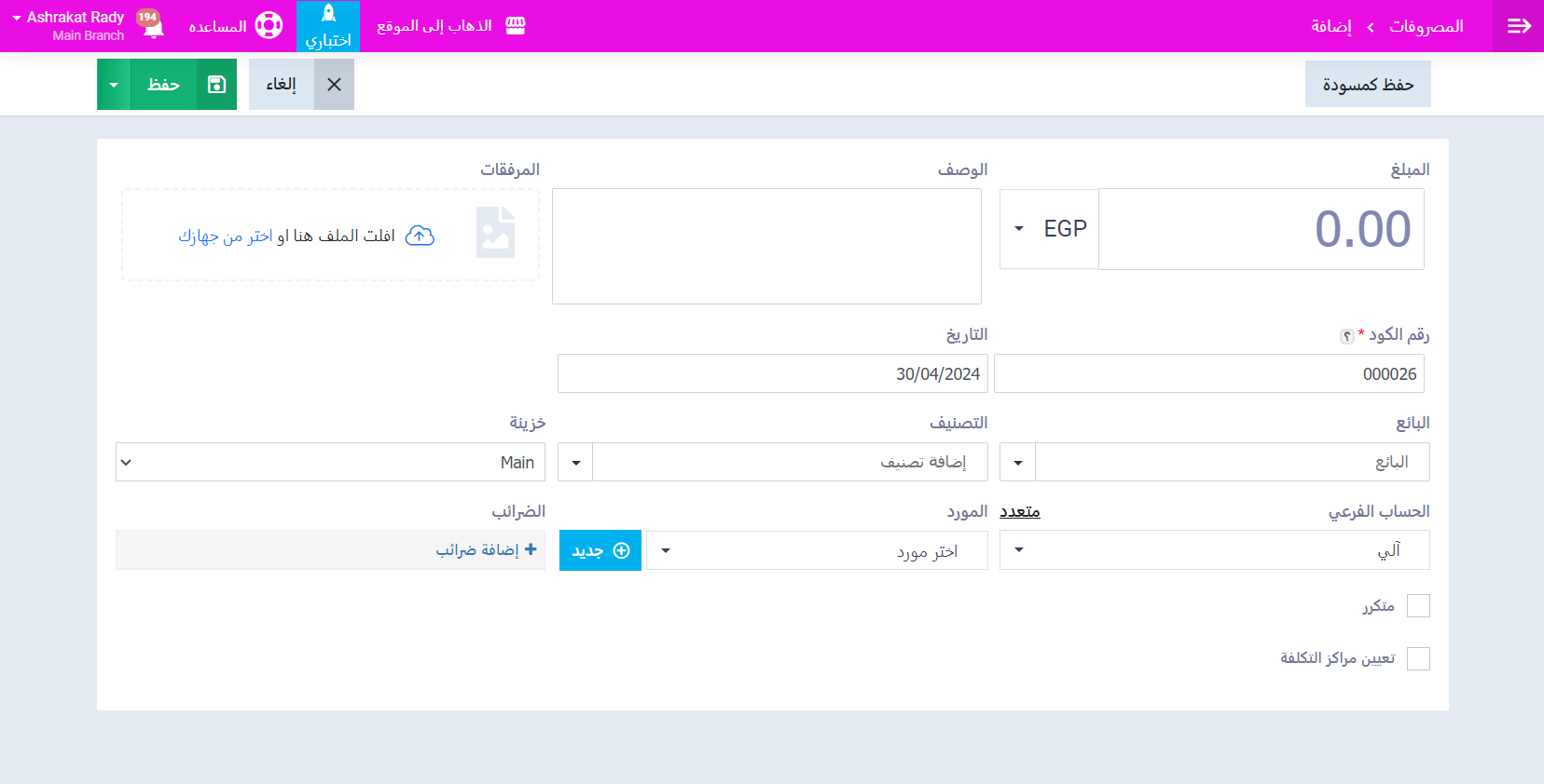 أكمل بيانات المصروف ثم اضغط على زر “حفظ”.