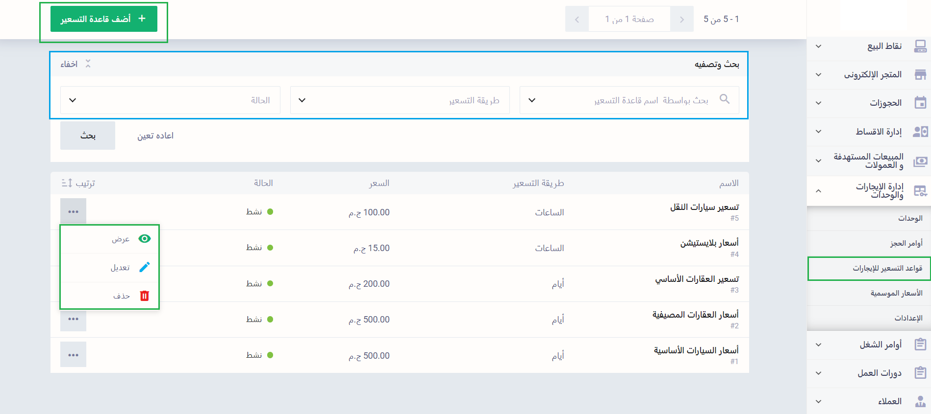 بعد إنشاء قاعدة التسعير يمكنك بسهولة استعراض تفاصيلها أو القيام ببعض الإجراءات عليها كالتعديل والحذف والتعطيل.
