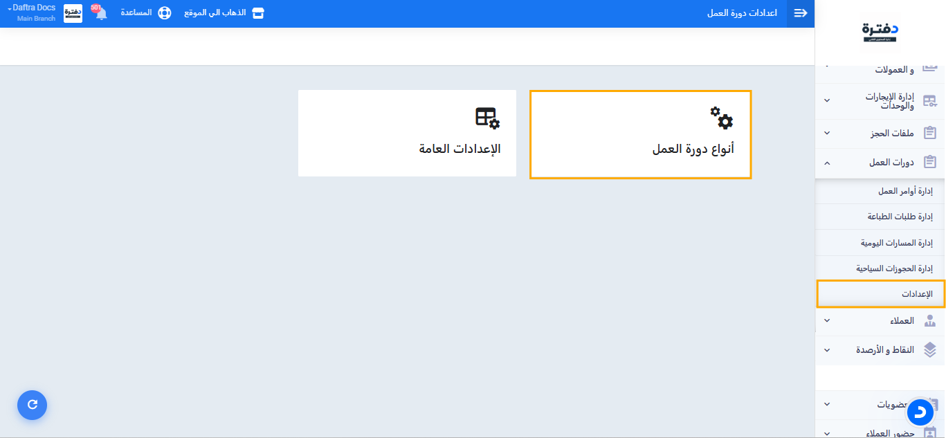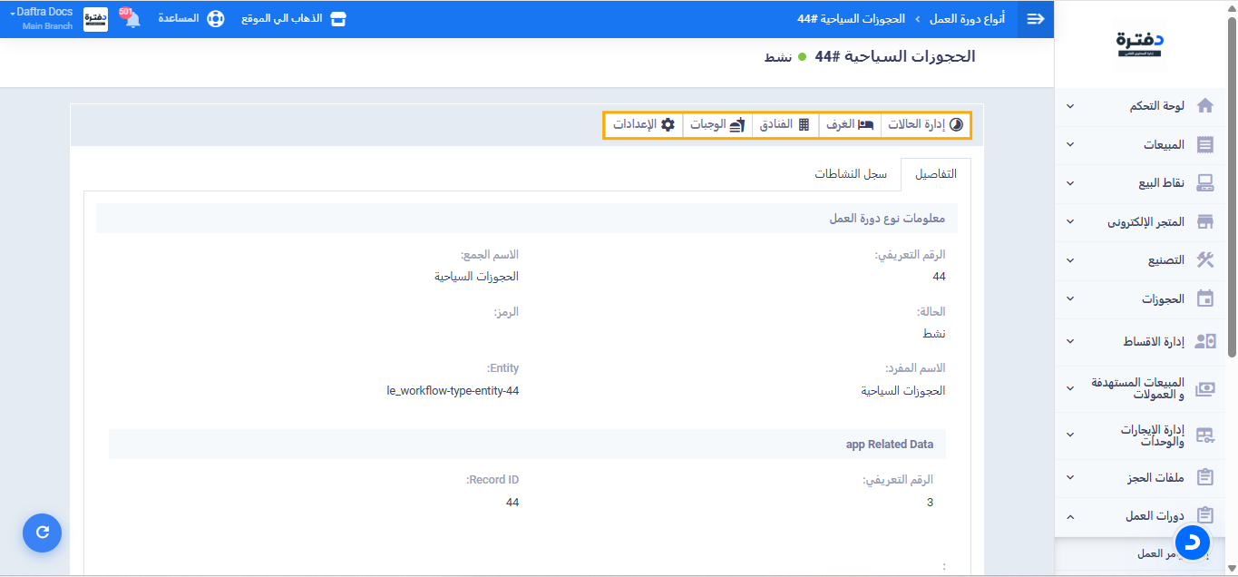إعدادات دورة عمل الحجوزات السياحية