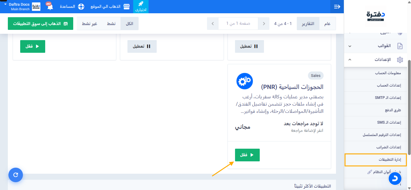 4. اضغط على زر التفعيل ليصبح التطبيق نشطًا.