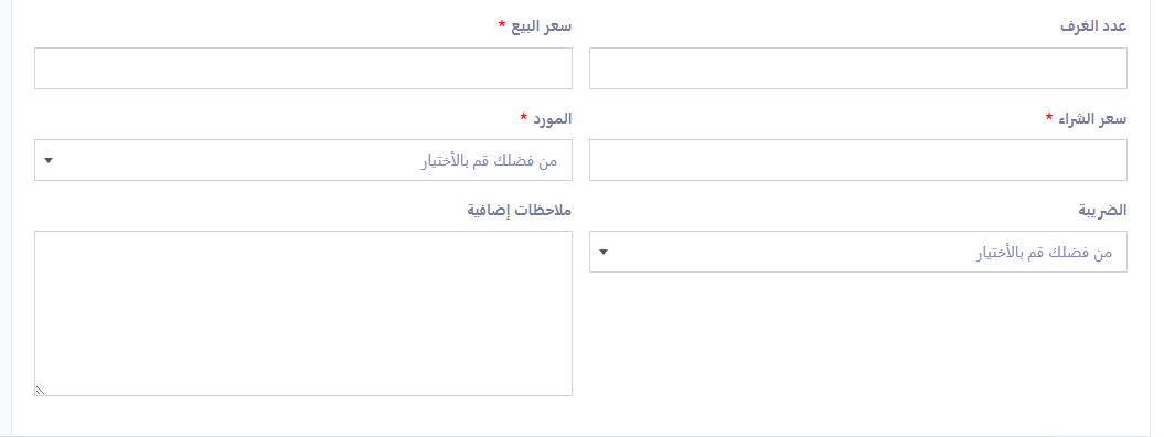 • سعر البيع للغرفة/الليلة: أدخل السعر الذي سيتم احتسابه على العميل