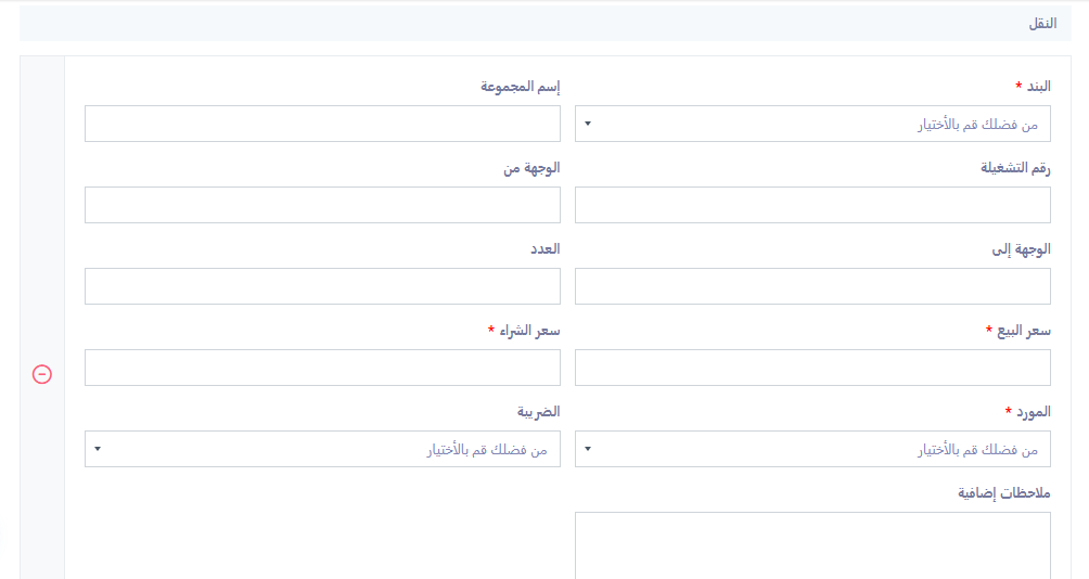 ثالثًا: إضافة تفاصيل النقل