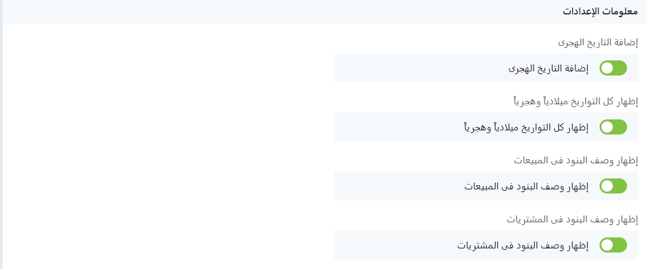 إظهار التاريخ الهجري في الفواتير: لعرض التاريخين (ميلادي + هجري) في الفواتير