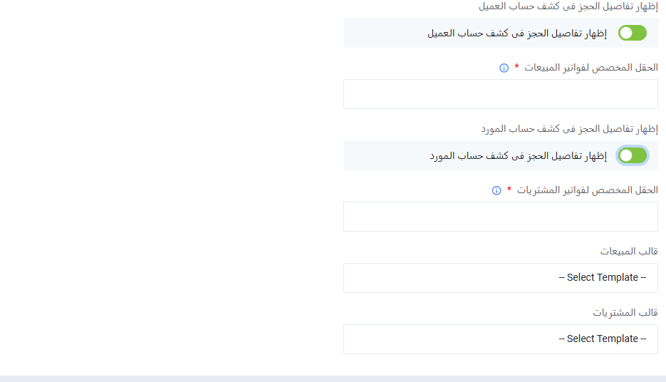 • اختر قالب الفاتورة الذي سيتم استخدامه عند إنشاء الفواتير من الحجز