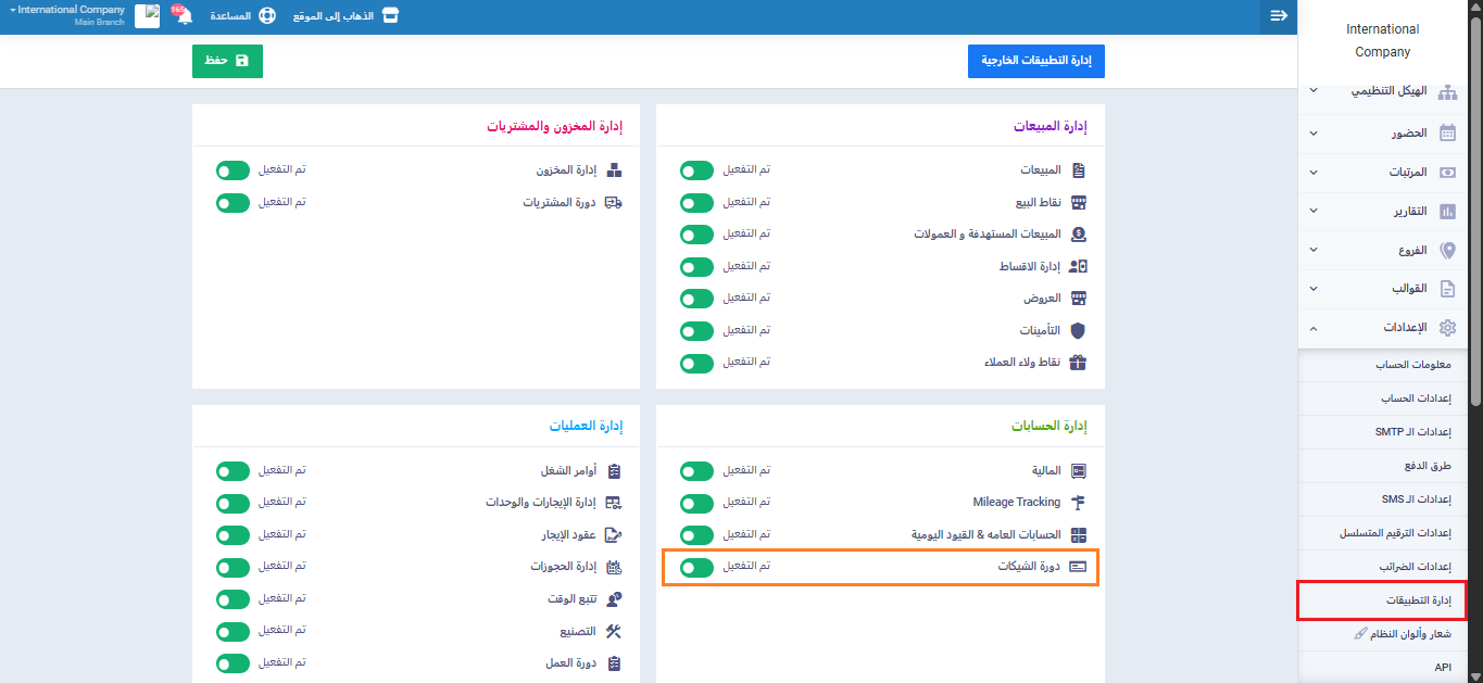 - تفعيل تطبيق دورة الشيكات في الحساب.