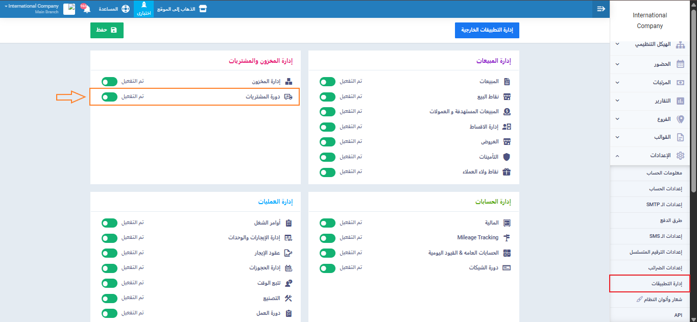 ثم فعِّل تطبيق “دورة المشتريات” كما يظهر أمامك في الصورة التالية: