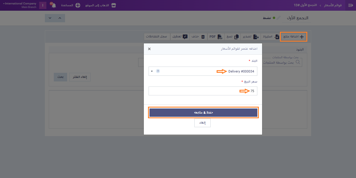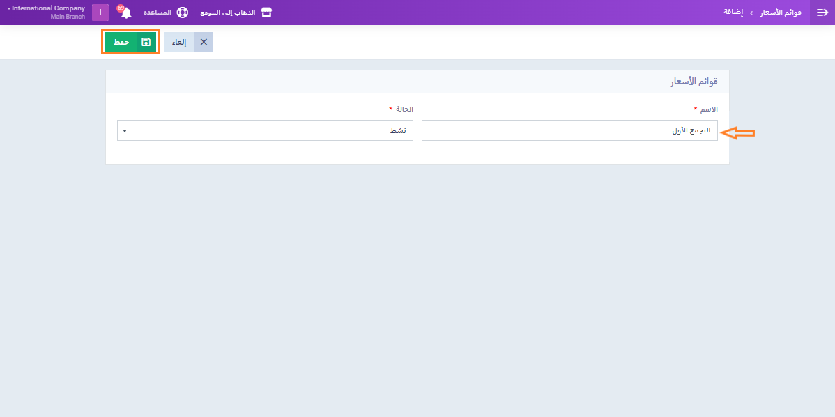 في حقل “مجموعات الأسعار“، حدّد قائمة الأسعار التي تتوافق مع موقع التوصيل الخاص بالعميل. اضغط على زر “حفظ“.