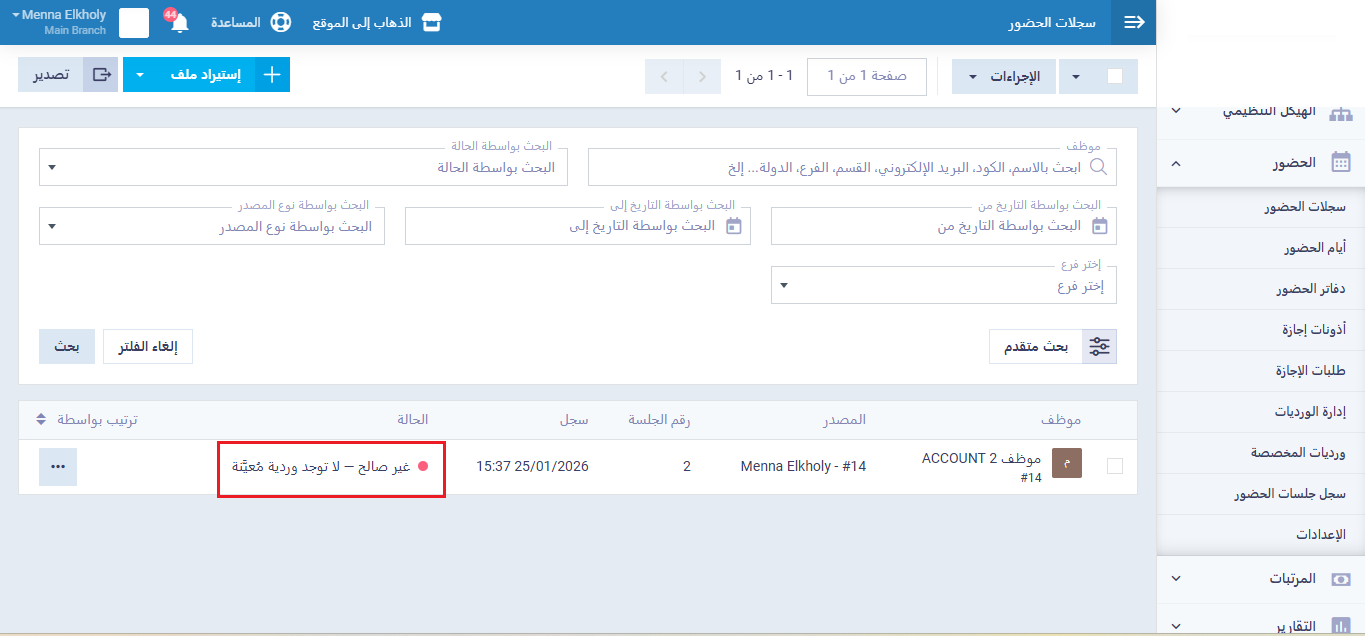 عند العودة إلى صفحة “سجلات الحضور”، سيعرض النظام تنبيهًا يُخطرك بوجود سجل حضور جديد لم يتم احتسابه بعد.