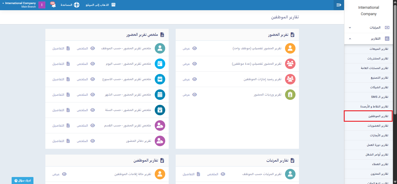 يمكنك بالتوجه إلى “تقارير الحضور” المنسدلة عن “التقارير” بالقائمة الرئيسية، الحصول على تقارير ملخصة إجمالية وتقارير تفصيلية عن كل ما يتعلق بحضور موظفيك دون أي جهد إضافي لإعداد هذه التقارير!