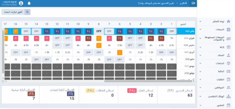 على سبيل المثال يمكنك عرض تقرير الحضور الخاص بموظف معين لفترة زمنية تحددها أنت، لمتابعة أدائه وتقويمه.