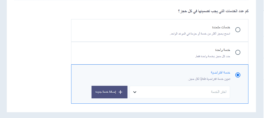 من خلال هذه الإعدادات يمكنك تحديد عدد الخدمات التي يسمح بها داخل الحجز الواحد: