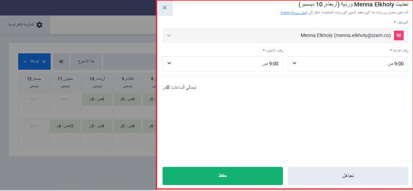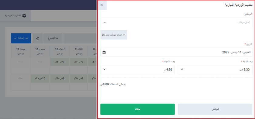 اضغط على حفظ لإتمام عملية تحديث الوردية.