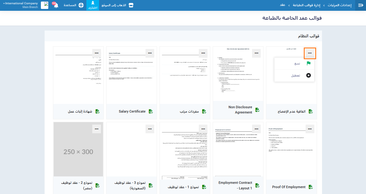 يوفر النظام العديد من القوالب المُعدة مسبقًا التي تسمح للمستخدمين بإنشاء نسخ ورقية من الوثائق المهمة مباشرة من النظام. نوضح في هذا المقال كيفية تعديل قوالب الطباعة الخاصة بكل من (العقود – مسير الراتب – قسائم الراتب) لتناسب احتياجات عملك.