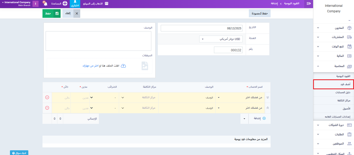 في حال وجود مصروفات مستحقة ترغب في إثباتها بالحسابات، اتبع ما يلي: