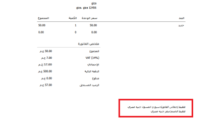 اضغط على “حفظ”، وبمجرد حفظ التعديلات، ستظهر القيم مكتوبة بالحروف (مُفَقَّطة) عند طباعة الفاتورة.