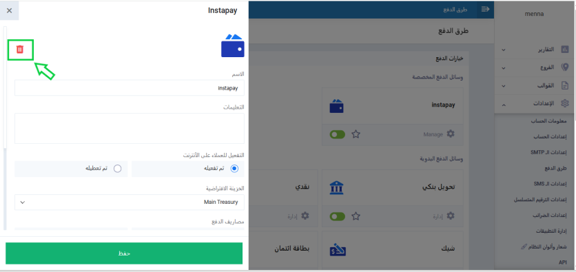 كيفية حذف وسائل الدفع المخصصة