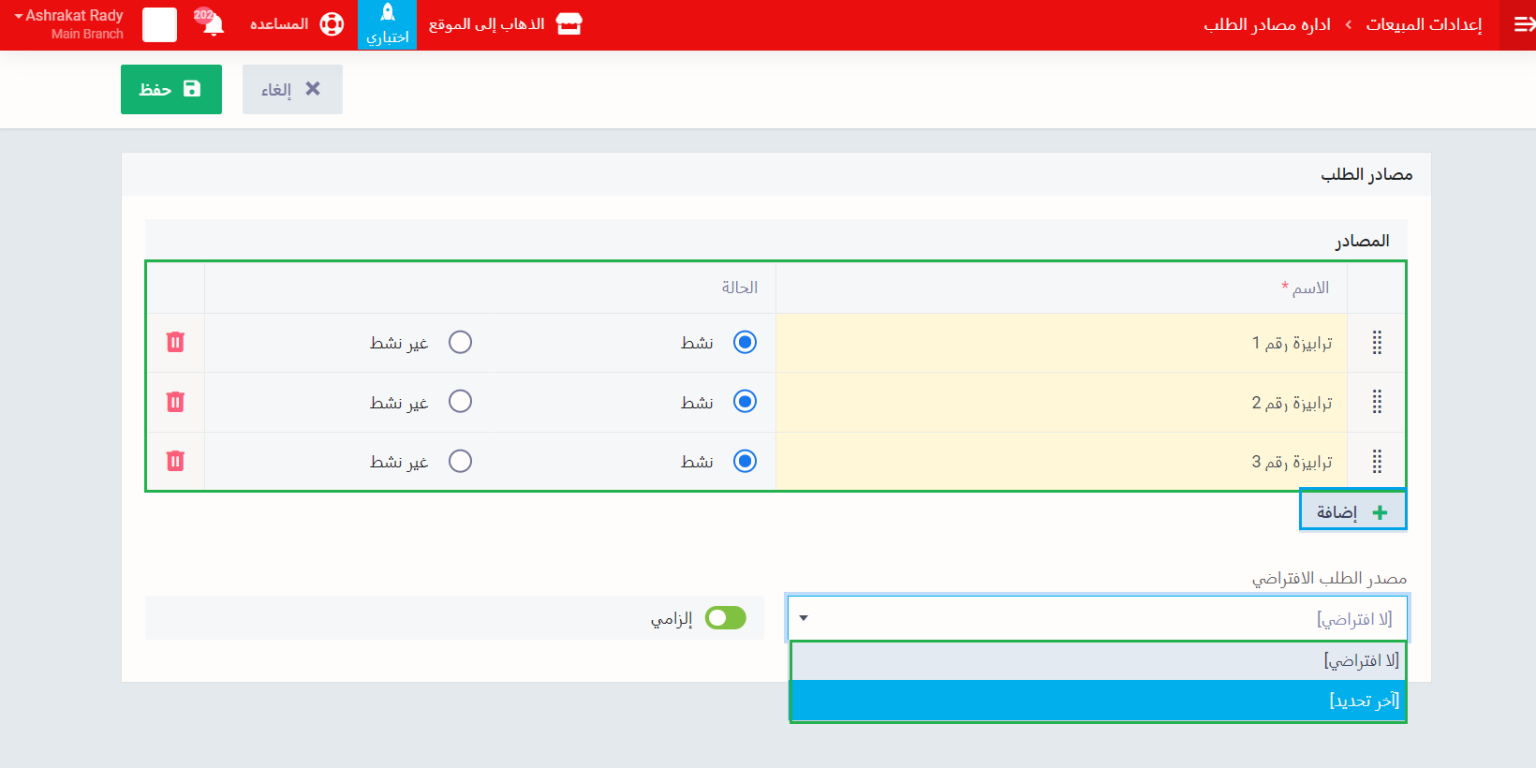 إضافة مصادر الطلب في الفواتير ومن نقاط البيع